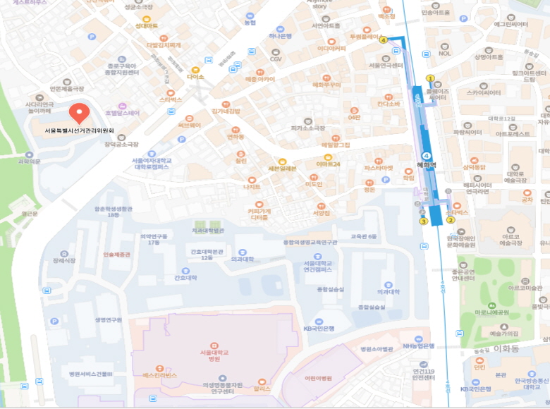 | 대표전화 | 총무과 02-741-4226, 선거과 02-764-0313, 지도과 02-744-1390, 홍보과 02-764-0315 |